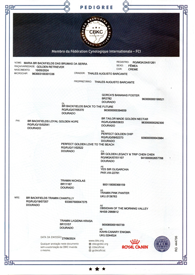 Mãe: BR BACKFIELDS TRAMIN CHANTILLY